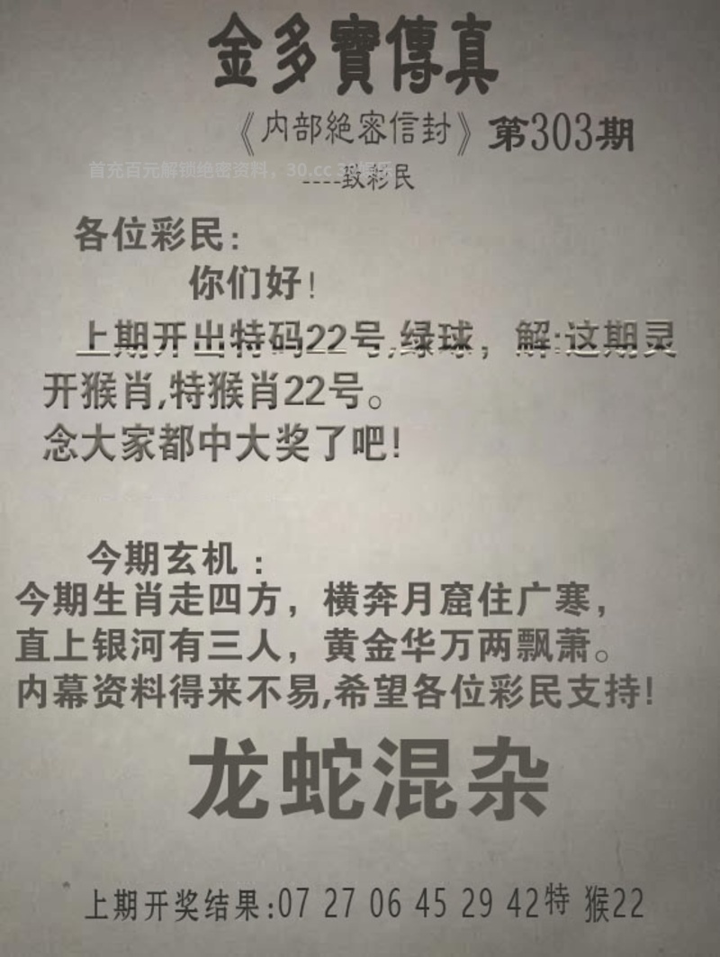 | 302期家野中特【家禽】开:猴22错 |
